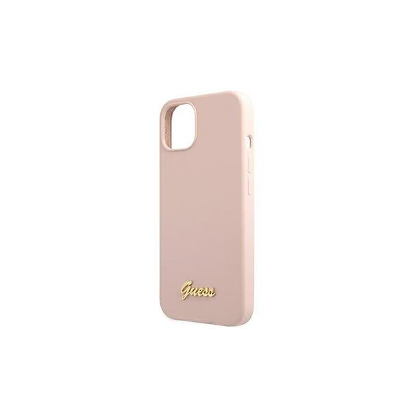 Guess iPhone 13 Skal Magsafe Silicone Script Gold Logo LjusRosa