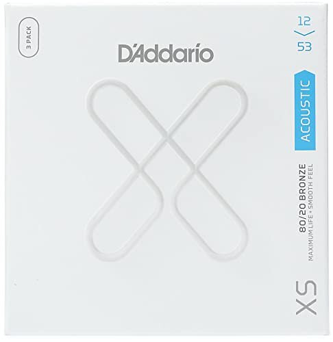 D'Addario Acoustic Guitar Strings XS 80/20 Bronze Coated XSABR1253-3P Light Gauge 12-53 6-String Set Pack of 3