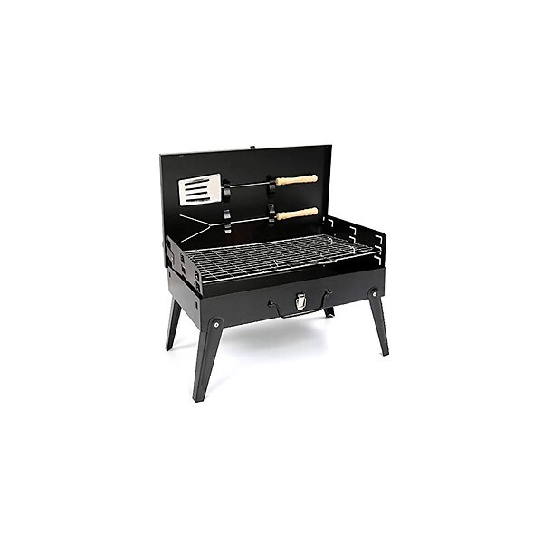 Garden Mile Black Iron Charcoal BBQ Grill with Accessories Portable Folding Outdoor
