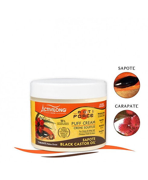Activilong Actiforce Puff Cream - Blow-Dry Cream Infused with Black Castor Oil and Sapote - Rich Creamy Texture for Thicker Hair - Strength and V