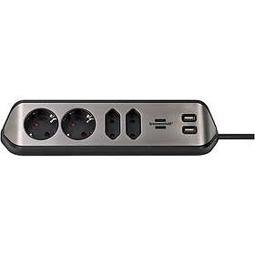 Brennenstuhl Grenuttag 4 kontakter+ 2 USB-A portar 2m