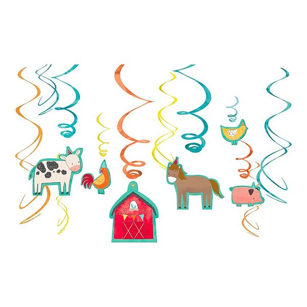 Swirl Decorations (Pack of 12) - 5"""" & 7"""" - Foil & Plastic Hanging Swirls - Perfect for Memorable Birthday Parties Barnyard Birthday