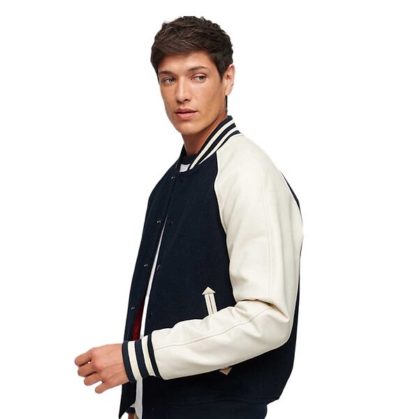 Superdry for man. M5011730A College Varsity navy bomber jacket (XL), Casual, Wool
