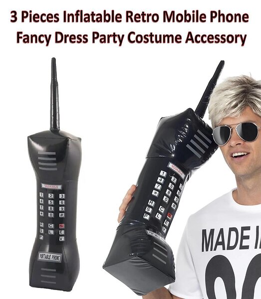 Smiffys Inflatable Retro Mobile Phone Black One Size