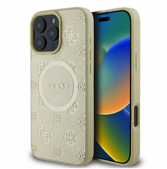 Guess Saffiano Peony Stamp MagSafe Fodral till iPhone 16 Pro