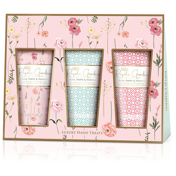 Baylis & Harding Royale Garden Rose, Poppy & Vanilla Hand Cream Trio Gift Set 150ml