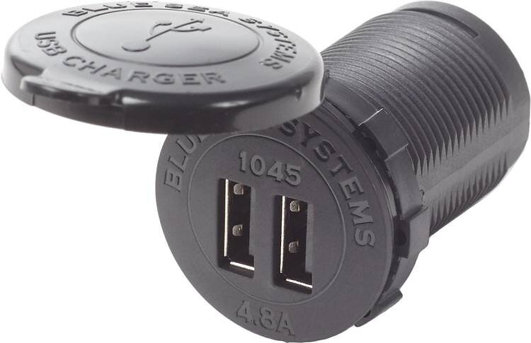 Blue Sea Systems USB uttag x2 (svart) 12/24V, 48A, rund (Bulk)