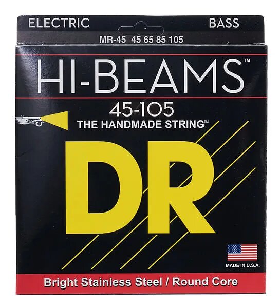 DR Strings HI-BEAMS - Stainless Steel 4-String Bass Guitar Strings 45-105 Round Core