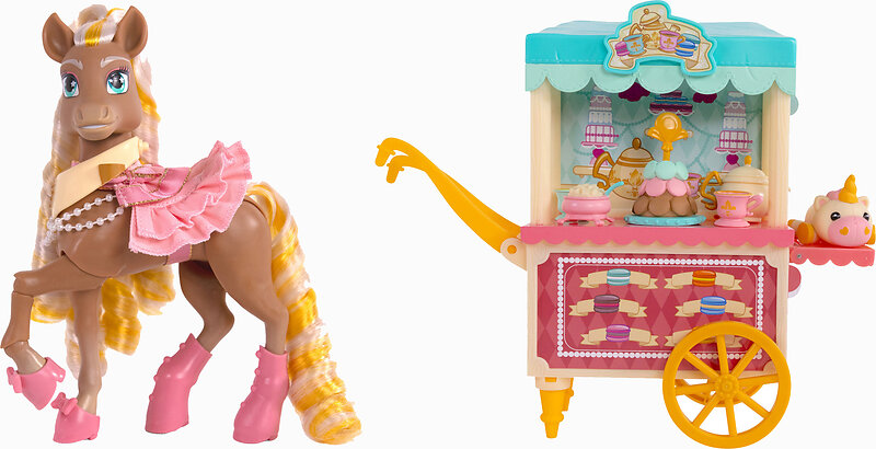 Wild Manes Horse Toys Cheries Tea and Treats Cart Playset with Cherie Horse Doll Figure Includes Brush and Play Accessories