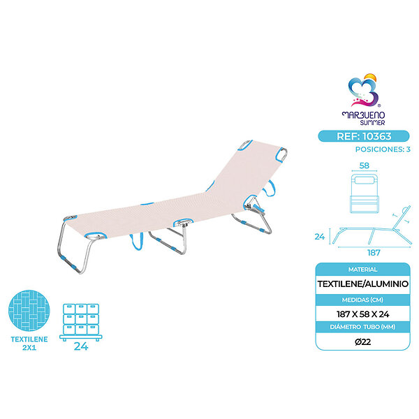 Marbueno Summer 10363 187x58x24 Cm Opvouwbare Zonnebank
