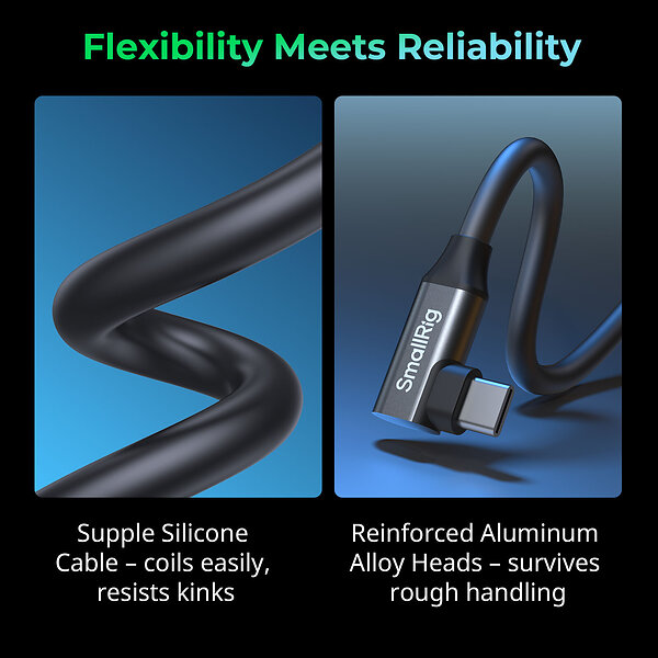 SmallRig 5076 USB-C Data Cable (Straight to Angled, 60cm (40Gbps 240W 8K)