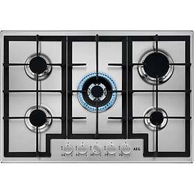 AEG HGX75400SM 3000 Series 75cm 5 Burner Gas Hob with Wok Burner - Stainless Steel