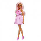 Barbie Fashionistas Doll #238 with Pastel Pink Hair Wearing Strapless Dress with Rose Bodice Pearly Barrette Accessory and Strappy Pink Heels