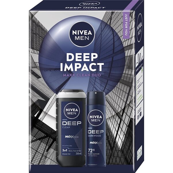 NIVEA MEN Deep Impact Duo Set for Men (Body Wash 250ml, Antiperspirant Spray 150ml)
