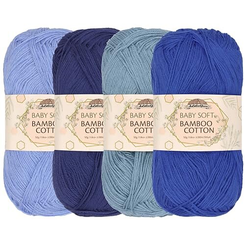 JubileeYarn Baby Soft Bamboo Cotton Yarn - 50g/Skein - Shades of Blue - 4 Skeins