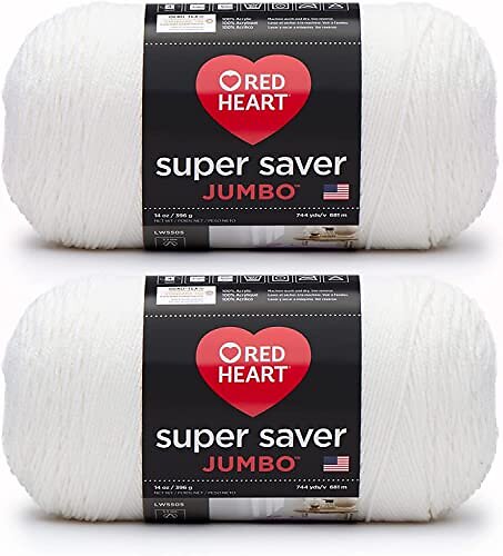 Red Heart Super Saver Jumbo White Yarn - 2 Pack of 396g/14oz - Acrylic - 4 Medium (Worsted) - 744 Yards - Knitting/Crochet