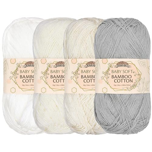 JubileeYarn Baby Soft Bamboo Cotton Yarn - 50g/Skein - Shades of White - 4 Skeins