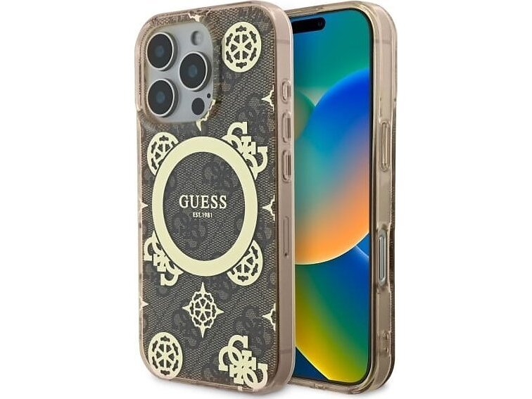 Guess IML Peony On 4G Background Case with MagSafe for iPhone 16 Pro Max 6.9" Brown - GUHMP16XH4PYEEW
