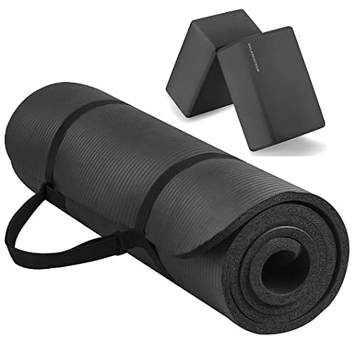 BalanceFrom All-Purpose Yoga Mat incl. Carrying Strap + Yoga Blocks