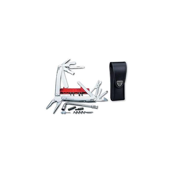 Features: File, Tongs, Knife, Corkscrew, Wire stripper, Scissors, Bottle opener, Screwdriver, Can opener, Saw, Small knife, Side set, Screwdriver (small), Hook, AwlRead more