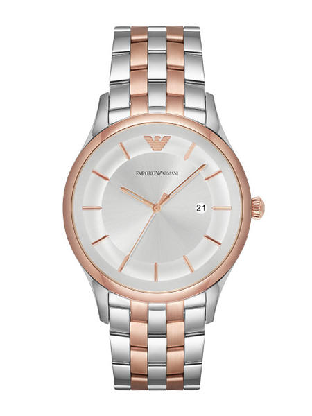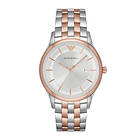 Emporio Armani Mens Gents Watch Rose Gold And Silver Stainless Steel Strap Silver Dial AR11044