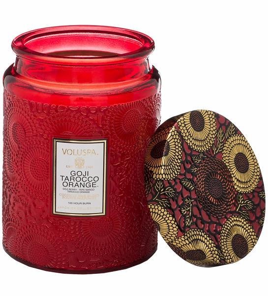 Voluspa Large Embossed Glass Jar Candle Goji Tarocco Orange