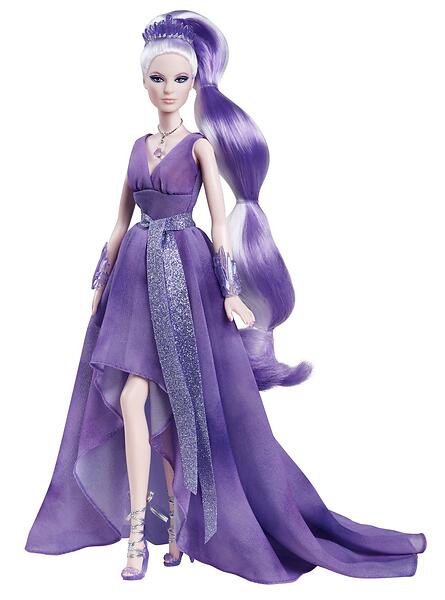 Barbie Crystal Fantasy Collection Amethyst Doll (13-in Platinum Hair) with Genuine Amethyst Stone Necklace Wearing Gown and Accessories Gift f