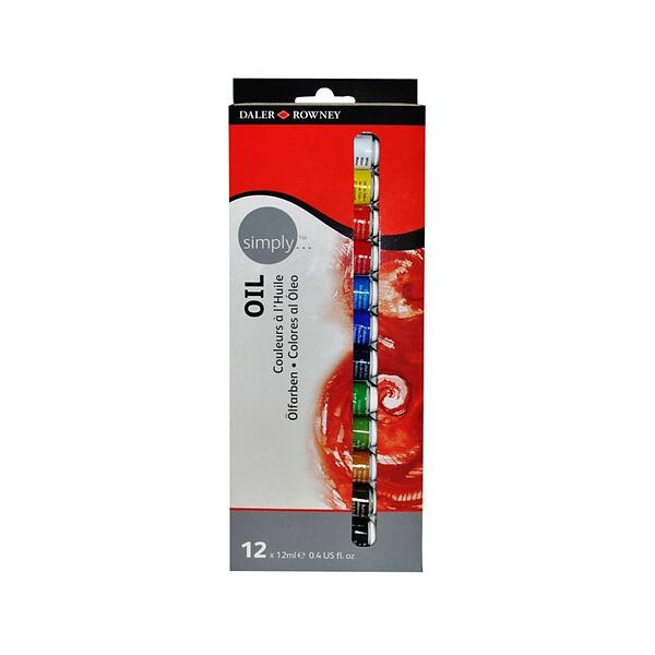 Daler-Rowney Simply Oil Paint, Aluminium Tube, 0.41oz - 12 ml, Cardboard Box, Set, 12 Assorted Colours