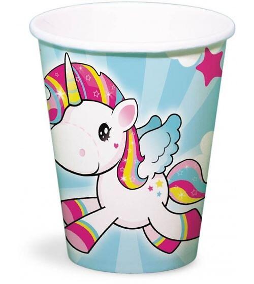 8 Unicorn cardboard cups 250ml