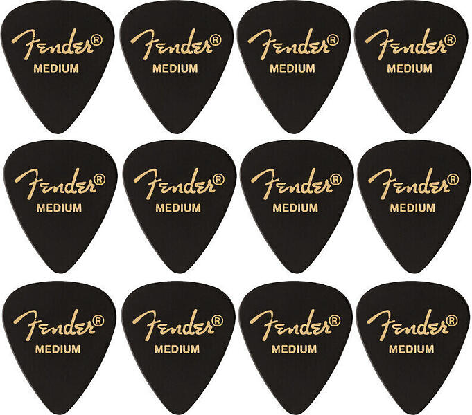 Fender Classic Celluloid Picks Black 351 Shape Medium Pack of 12