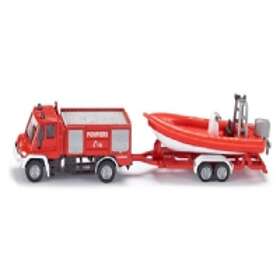 Siku Unimog Fire Engine With Boat - Scale 1/87