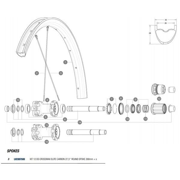 Mavic Crossmax Elite Carbon 27.5 Achterste Rechter Spaken 12 Eenheden