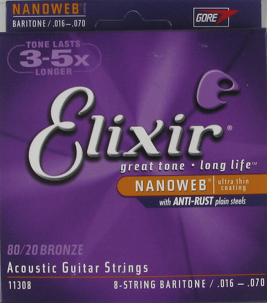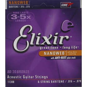 Elixir 11308 NANOWEB Baritone 8-String Acoustic Strings 16-70