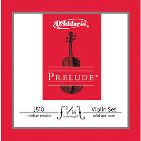 D'Addario Prelude Violin String Set 1/16 Scale Medium Tension - J810 1/16M - Solid Steel Core Warm Tone Economical and Durable - Educators Ch
