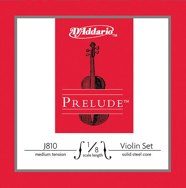 D'Addario Prelude Violin String Set 1/8 Scale Medium Tension - J810 1/8M - Solid Steel Core Warm Tone Economical and Durable - Educators Choi