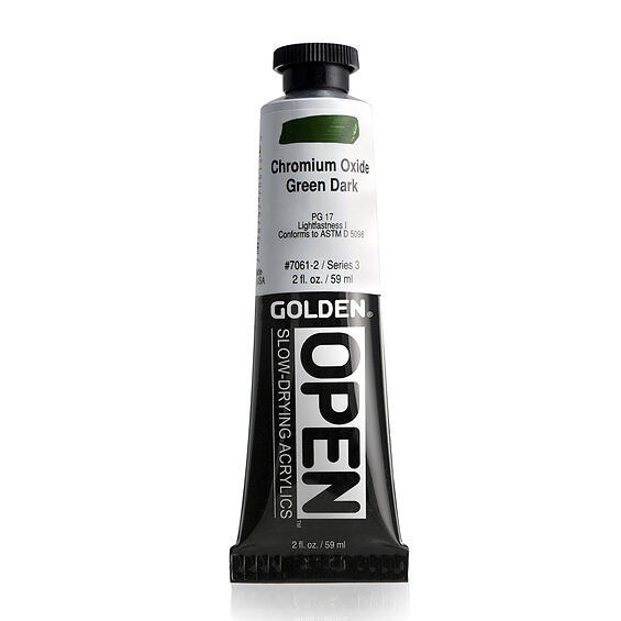 OPEN Slow-Drying Acrylics by GOLDEN Chrom Oxide Green Dark 2 fl oz. tube Professional Acrylic Paint Semi-Opaque