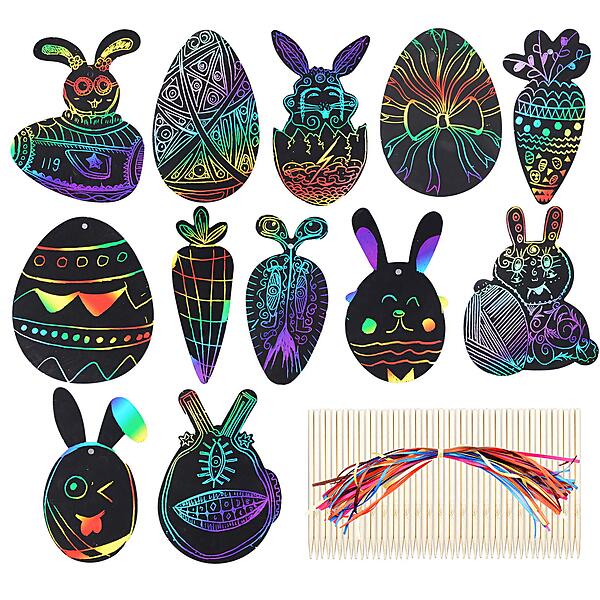 Rainbow BETESSIN 48 Pcs Scratch Paper Craft Kits for Kids Magic Scratch Sets for Children Girls Boys Game Birthday Party Favor Easter Craft